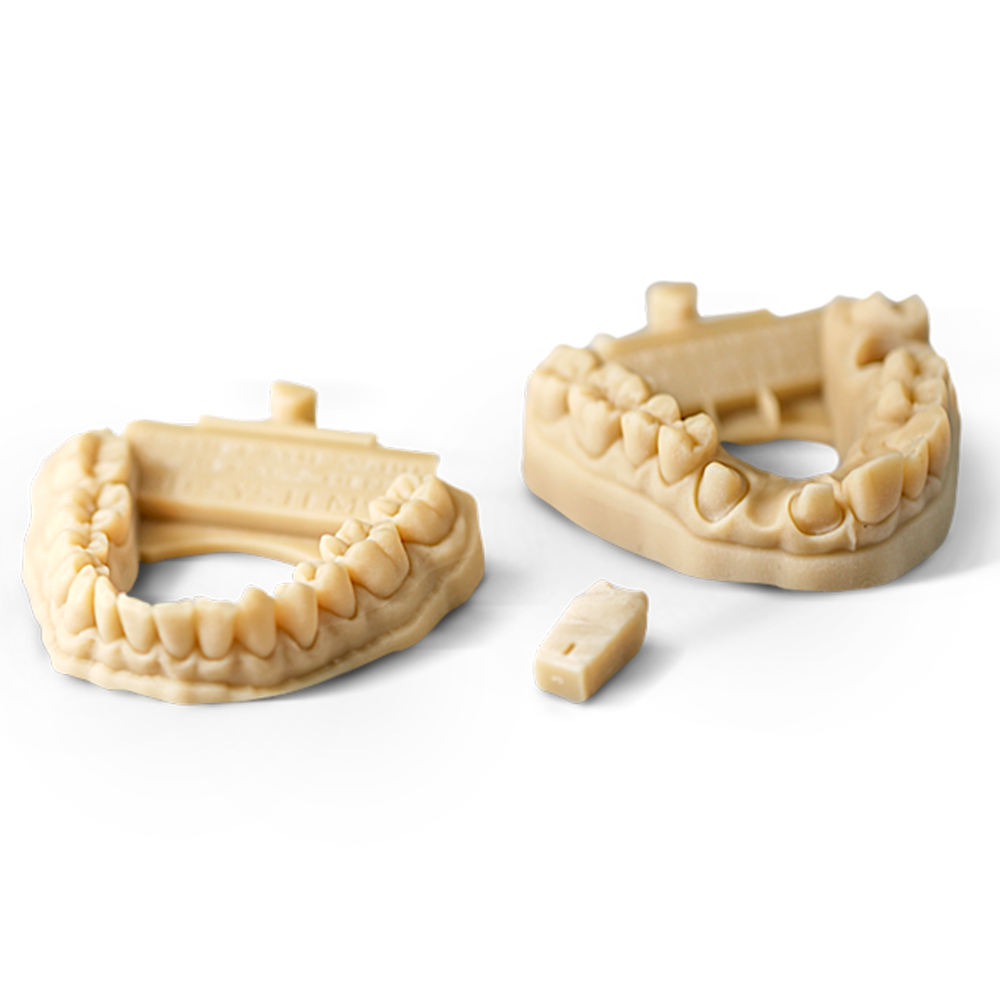 With excellent edge fidelity and low-friction matte surfaces, the VisiJet M2R-TN material is ideal to produce high precision prosthodontic and thermoforming models in tan color, for easy detail visualization.