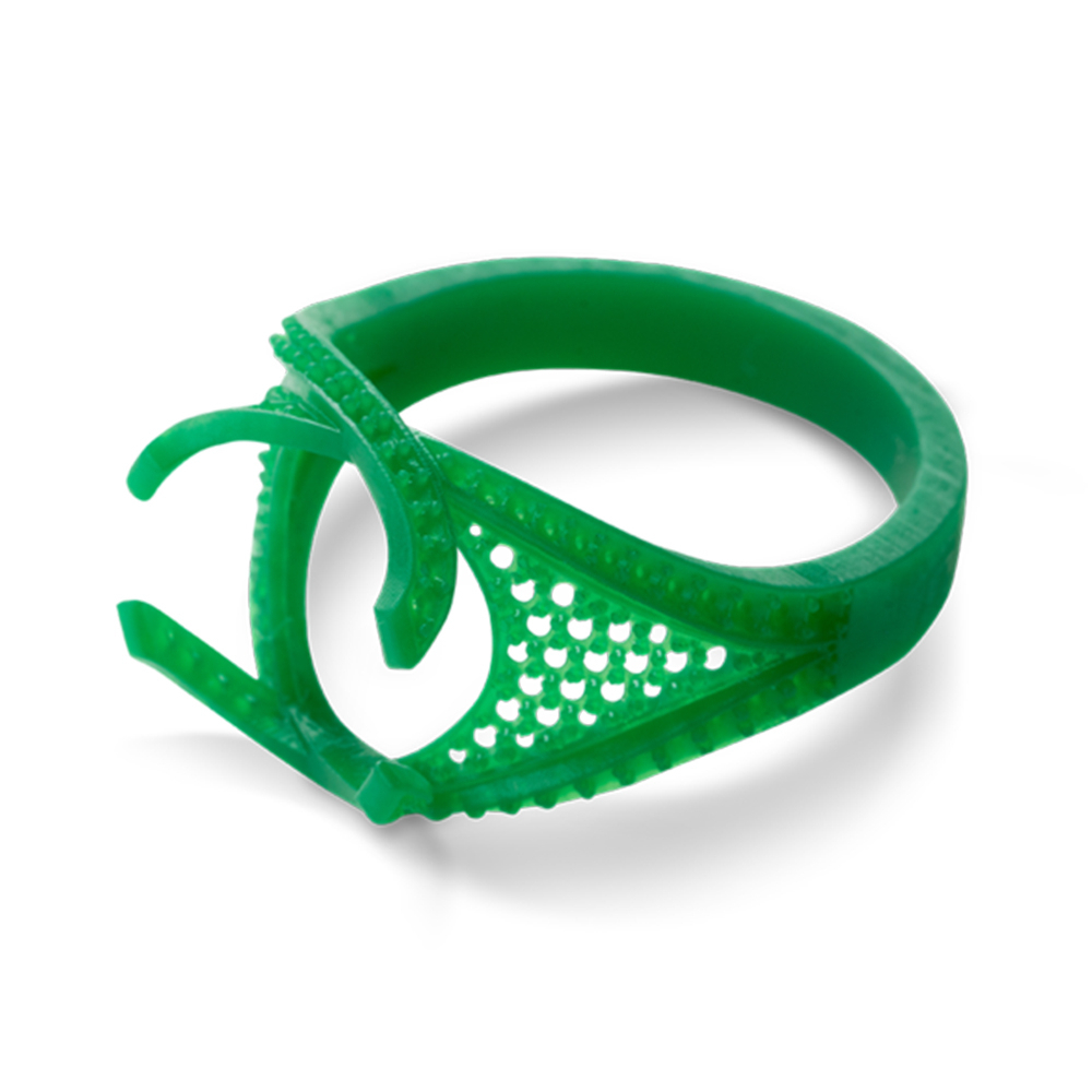 OPTIMIZED FOR CLEAN AND EASY BURNOUT FOR DIRECT CASTING, THIS HIGH CONTRAST GREEN CASTABLE MATERIAL DELIVERS FINELY DETAILED, HIGH-RESOLUTION JEWELRY PATTERNS TO PRODUCE HIGH QUALITY JEWELRY PIECES RAPIDLY.