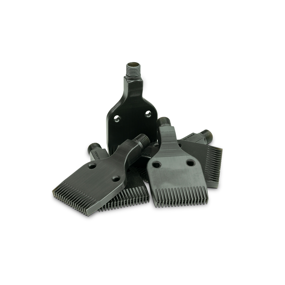 Figure 4 PRO-BLK 10 delivers on the promise of additive manufacturing with true direct digital production of plastic parts. Go from CAD to manufacturing line in one day with tool-less, same day part production. With a fast print speed and simplified post-processing that includes a single curing cycle and single solvent cleaning, this material delivers exceptional throughput. It is a high precision resin producing parts with a smooth surface finish and sidewall quality, and has excellent mechanical properties and long-term environmental stability that brings a new level of assurance to 3D production.