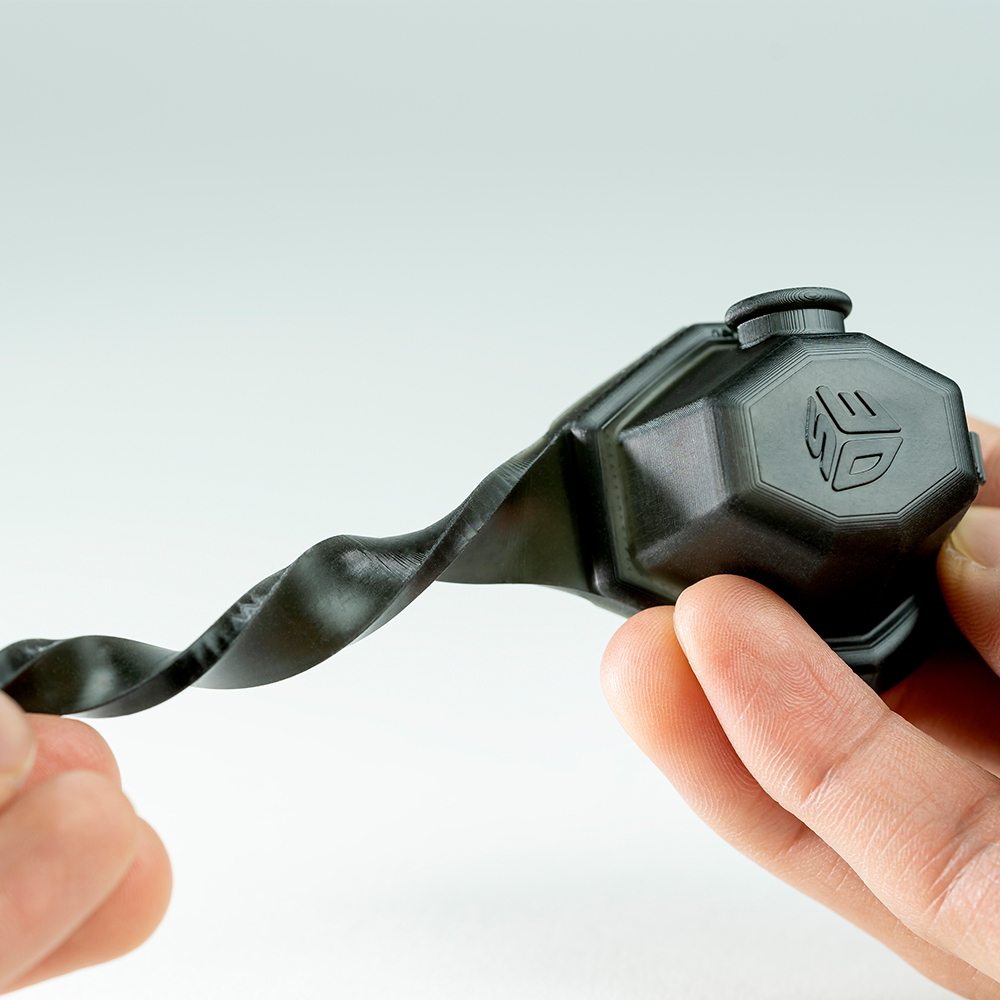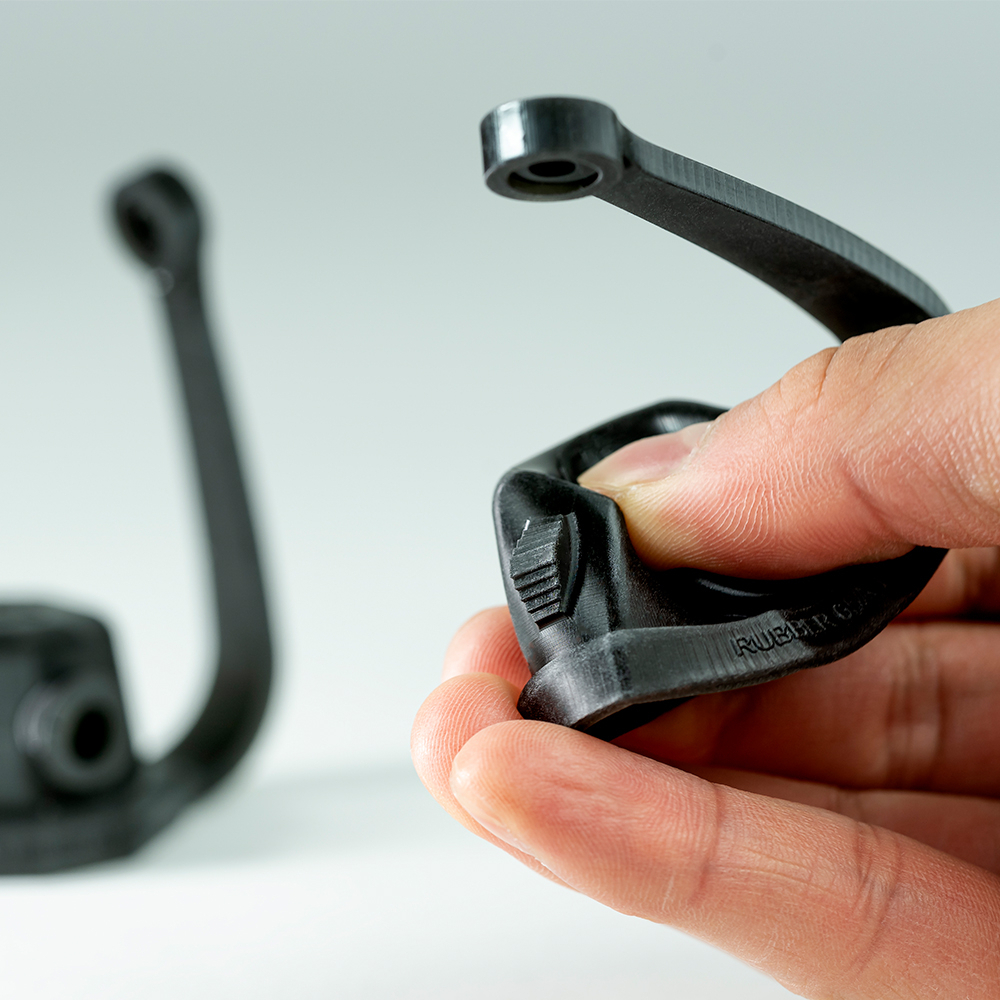 Figure 4 RUBBER-65A BLK is a mid-tear strength material for the production of medium hard rubber parts with slow rebound, for applications such as grips, handles, gaskets, bumpers, seals, vibration dampening components and more.